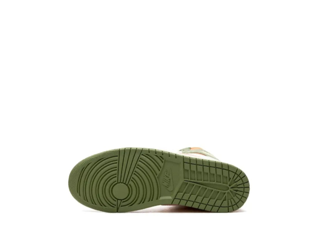 The Air Jordan 1 High OG Craft “Celadon” is a luxe iteration of the iconic sneaker by Jordan Brand. The combination of premium materials, including a white leather base, olive green suede overlays, and a Bright Mandarin leather Swoosh, make for a striking look while the aged finish on the midsole gives the shoe a classic, retro feel.